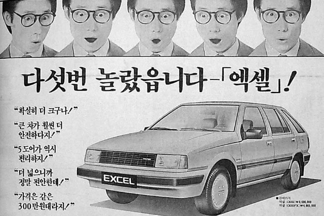 자가용 대중화, 마이 카 시대는 자동차 광고를 극적으로 바꿨다. "이제는 세계 최신 승용차와 비교하십시오-멋이라면 '포니 엑셀', 품위라면 '프레스토'"라는 당시 현대자동차 광고는 중산층으로 진입한 한국인의 욕망을 집약하는 광고 문구다.