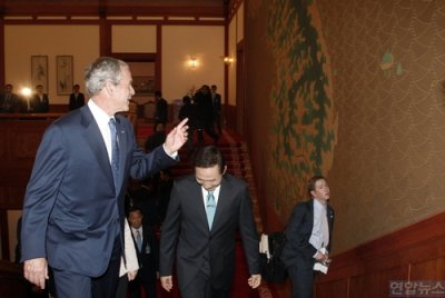 이에 대해 부시 대통령은 "그럽습니까(Is that)?"라고 반문했을 뿐이었다. 곧 부시 대통령은 "알겠습니다(I know)"라는 말도 덧붙였다. 그리고 두 정상은 곧 나란히 정상회담 장소로 향했다.