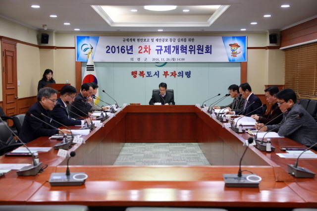 이날 회의는 규제개혁에 대한 군민체감도 향상을 위해 지난 7월부터 9월까지 두 달여간 실시한 <2016년 생활 속 규제개선 공모제>에서 제안된 63건 중 관련 부서의 검토의견 등 사전 심사에서 선정된 8건의 제안에 대한 심도 있는 토의 후 최종 6건에 대해 심의·의결했다.