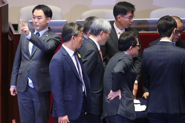 그런데 이 감표위원 중 한 명이었던 채 의원이 본회의장 뒤쪽을 보며 한 손을 번쩍 치켜올린 데 이어, 몇 분 후에는 연달아 손가락 둘, 셋, 네 개를 연달아 꼽아 보인 것이다.