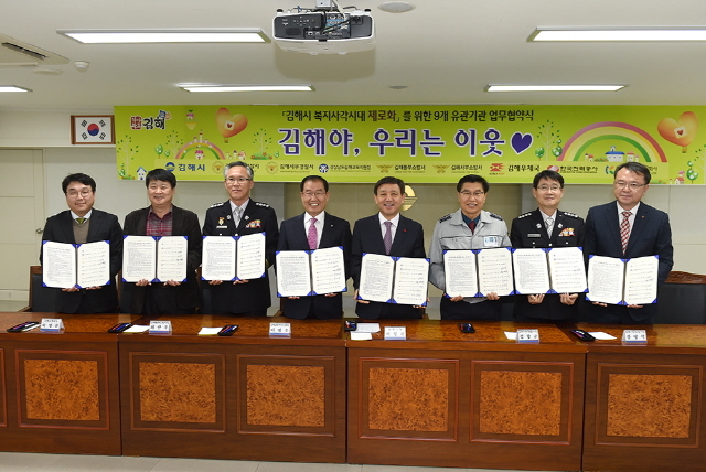 경남 김해시는 지난 9일 김해시청 소회의실에서 복지사각지대 제로화를 위한 9개 유관기관 업무협약식을 개최했다.