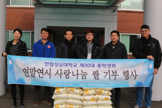 한림성심대학교(총장 우형식) 30대 총학생회가 13일 강원도장애인복지관에 한림성심대 학생 공동명으로 쌀 300kg을 전달했다.