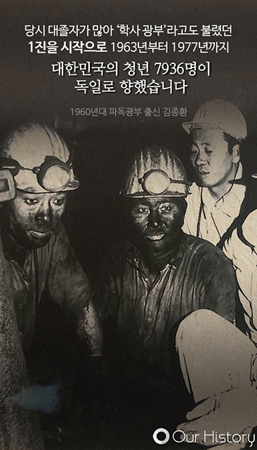 반면 독일로 떠난 ‘파독광부’들은 이역만리 지구 반대편 지하 막장에서 역시 목숨을 걸고 돈을 벌어야 했다.