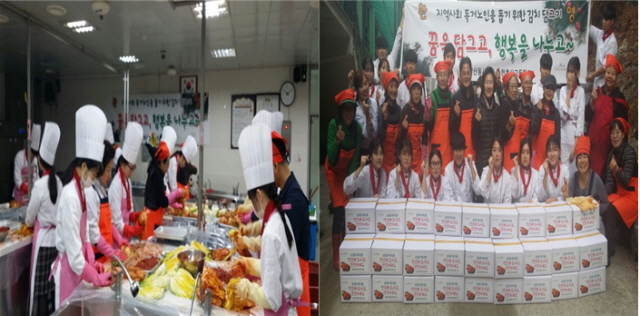 효산고는 지난 13일 조리실습실에서 민‧관‧학이 함께 하는 사랑의 김장 나눔 행사를 가졌다.