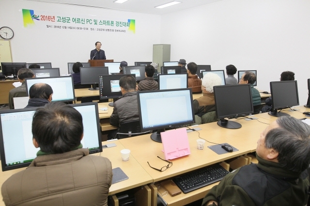 ‘2016년 고성군 어르신 PC 및 스마트폰 경진대회’에서 관내 거주 55세 이상 어르신들은 인터넷 정보검색을 통한 한글 문서작성 능력과 스마트폰을 활용한 타자능력을 겨뤘다.