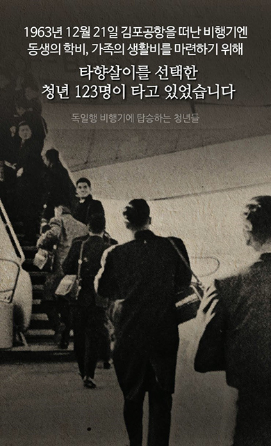 대한석탄공사 장성광업소에서 광부로 근무하던 박씨는 독일에 가서 3년만 고생하면 목돈을 만질 수 있다는 소리를 듣고 어렵게 독일행 비행기에 몸을 실었다.