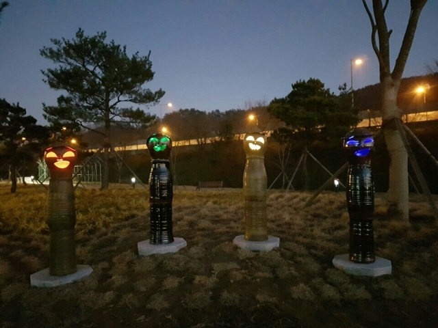 25일 시 관계자에 따르면 "이번 조형물 기증은 김 작가가 도자기 공법을 적용해 장승같은 4점의 조형물에 각각 ‘희로애락’을 표현 쉼터 이용자들에게 친근함을 제공하고 특히 조명을 추가 야간에 이색적인 광경이 연출되고 있다"고 전했다.
