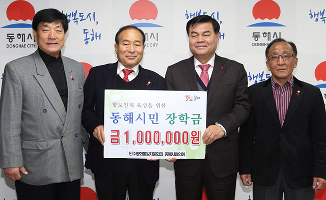 이어 대한노인회동해시지회(회장 남경만)와 동해중학교 총동문회(회장 진철호), 동해시파크골프협회(회장 홍대호)에서 각각 100만 원, 동해시청매화회(회장 이정희)에서 50만 원을 시민장학회에 전달하는 등 연말연시를 맞아 장학금 기탁에 각계각층의 시민과 단체들의 참여가 잇따르고 있다.