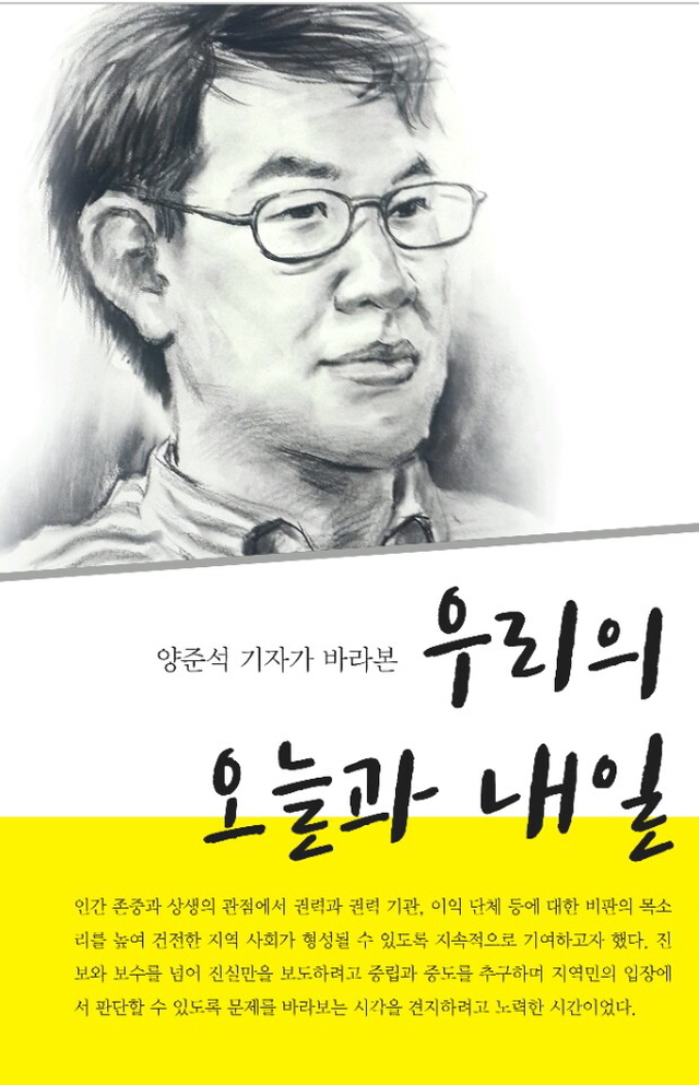 디자인창 출판사에서 발간한 양준석 기자의 칼럼집 책 제목은, <양준석 기자가 바라본 ‘우리의 오늘과 내일’>. ‘오늘과 내일’은 지역 인터넷 언론인 순천투데이에 지난 4년 동안 양준석 기자가 직접 쓴 시사칼럼과 기자수첩을 엮은 것이다.