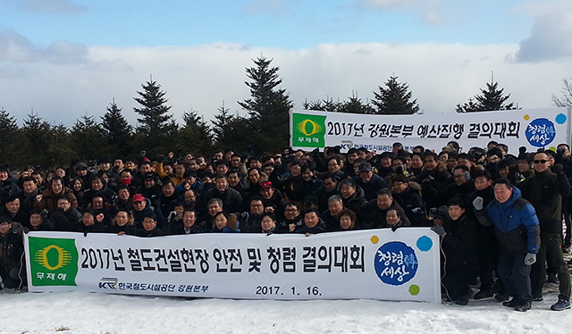한편 강원본부는 지난 16일 대관령 정상에서 공단 및 협력사 직원 160여명이 참여한 가운데 ‘2017년 안전․청렴 결의대회’를 개최하고, 안전과 청렴을 모든 업무의 기본 원칙으로 삼을 것을 다짐했다.