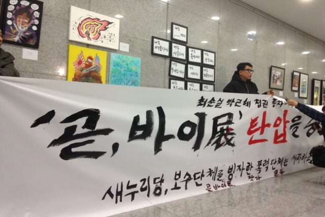 이에 해당 작품을 전시한 예술가들은 의원회관에서 성명을 내고 "전시장에 난입해 작품을 훼손하고 밟고 찢어버리는 행위는 나치 시대 히틀러 친위대들의 행동과 다를 바 없다"며 "이 전시의 본질은 표현의 자유와 풍자다. 새누리당과 보수 언론은 여성 비하 운운하며 박근혜-최순실 정권을 비호하지 말라"라고 주장했다.