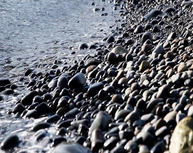살포시 치켜 오르는 파도에 차르르 소리를 내는 몽돌들, 하얀 거품 파도 사이를 구르는 까만 몽돌들.