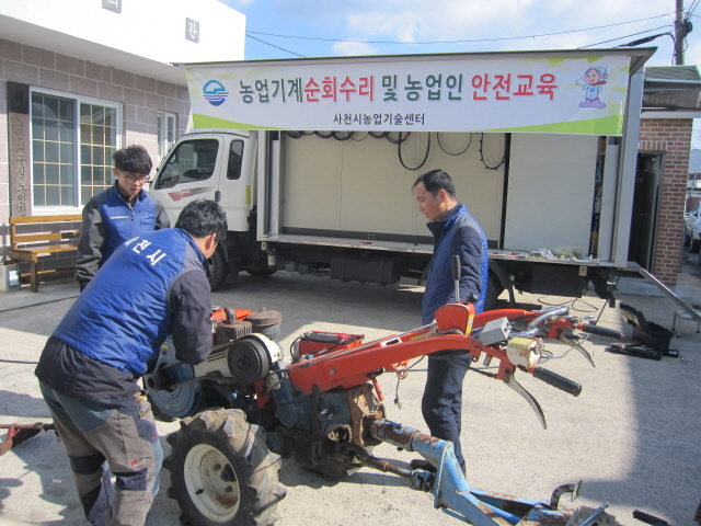시는 오는 17일 용현면 구월 마을을 시작으로 연 98개 마을에 걸쳐 관내 오지마을을 순회 하면서 농기계 수리는 물론 안전교육도 병행 추진하고 기계당 3만 원 이하의 부속품 비용은 사천시 조례에 의거 무상 수리하고 초과되는 금액에 대해서만 유상 수리 할 계획이다.