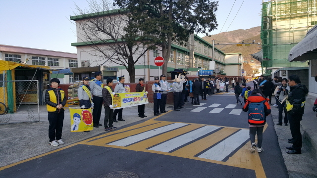 이날 캠페인은 오전 8시 등교하는 학생들에게 교통안전 홍보물 배부와 함께 ‘학교 앞 좁은 통학 길은 통행 차량을 잘 살피고 지나다닐 것’ 등 보행상의 주의사항을 당부하고, 학교주변 위험시설물도 일제 점검하고 정비했다.