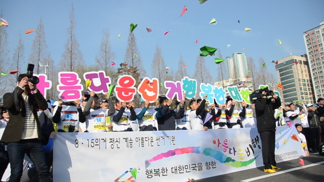 특히 식전행사로 전체 마라톤 참가자들과 마산용마고 학생 50여명이 3·15의 숭고한 정신을 계승하기 위해 종이비행기를 하늘로 날리면서 다함께 아름다운 선거를 염원하는 퍼포먼스를 진행했다.