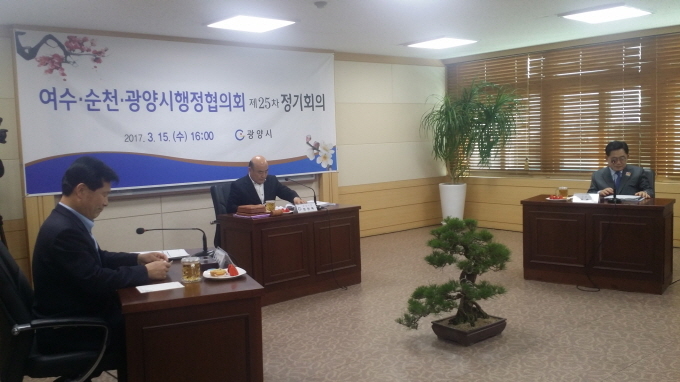 광양시는 광양만권 상생발전을 위해 운영하고 있는 여수·순천·광양시 행정협의회(회장 정현복 광양시장) 제25차 정기회의를 15일 광양시청에서 열었다.