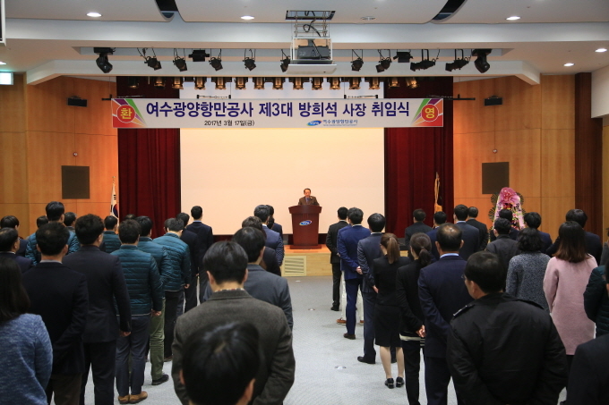 여수광양항만공사는 방희석 신임 사장이 17일 월드마린센터 2층 국제회의장에서 취임식을 갖고 본격적인 업무에 들어갔다고 밝혔다.