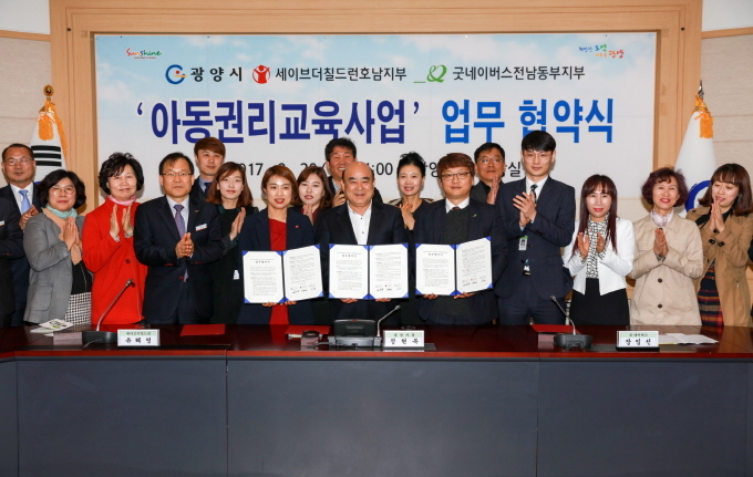 이날 협약식에는 정현복 광양시장, 유혜영 세이브 더 칠드런 호남지부장, 장임선 굿네이버스 전남동부지부장 등 30여 명이 참석했다.