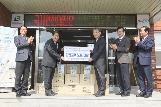 이번 안전 교육노트 전달은 국가안전대진단 수범 시책 일환으로 추진됐으며 관내 19개 초등학교 2300여 명의 학생들의 안전 교육자료로 활용된다.