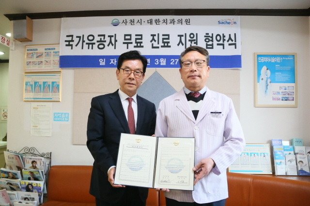 사천시와 대한치과의원이 지난 27일 대한치과의원에서 국가유공자 치과 무료 진료 지원 협약식을 가졌다.