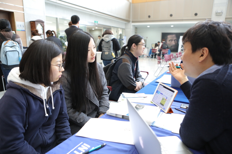 ▲29일 한림대학교 일송기념도서관이 주최한 ‘2017 전자정보 박람회’가 도서관 4층 로비에서 열렸다. 이날 박람회에 참가한 교보문고, EBSCO 등 13개의 국내·외 업체들은 도서관이 구독 중인 자사의 데이터베이스와 전자저널 서비스를 설명하고 직접 시연할 기회를 가졌다. ⓒ한림대