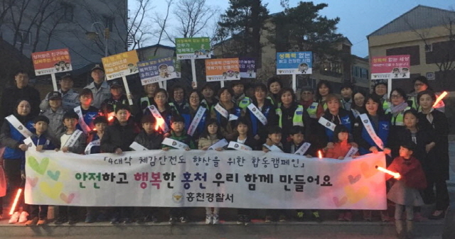 이번 공동 치안 캠페인 참가는 홍천지역 온라인 커뮤니티 맘 까페 ‘홍천엄마사랑’회원들이 자발적으로 참여해 여성자율방범대 회원들과 야간 합동 순찰을 하며 여학생· 여성들의 안전을 지켰다.