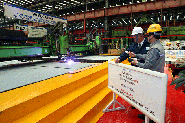 대우조선해양(대표이사 정성립)은 지난 2014년 카자흐스탄 텡기즈 유전(Tengiz Field)을 운영하는 텡기즈셰브로일(Tengizchevroil LLP, 이하 TCO)社로부터 수주한 3조원 규모의 육상 원유생산 플랜트의 건조 시작을 알리는 강재절단식(Cut Steel Ceremony)을 지난달 28일 거제 옥포조선소에서 갖고 본격적인 모듈 생산에 들어갔다.