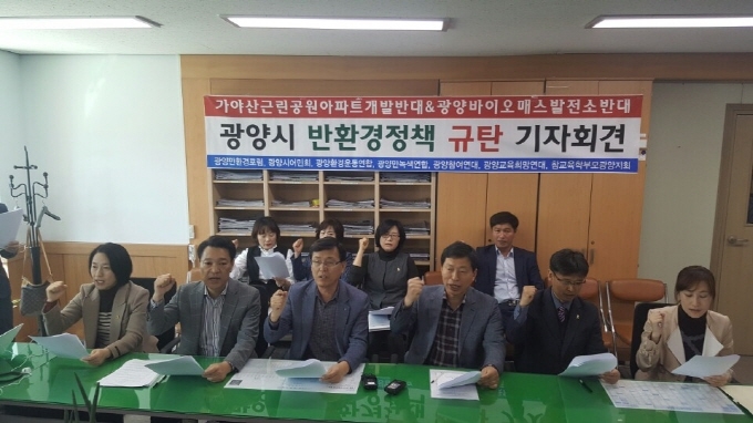 이날 기자회견은 광양만경제포럼, 광양시어민회, 광양환경연합, 광양만녹색연합, 광양YMACA, 광양참여연대, 참교육학부모회광양지회, 광양교육연대등이 참여했다.