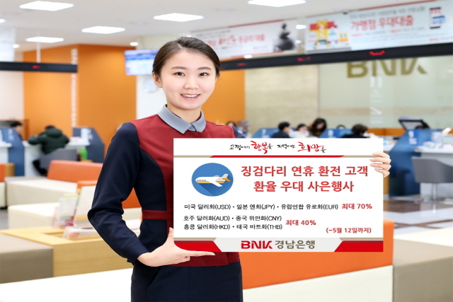 BNK경남은행은 오는 4월 마지막 주말부터 5월 초까지 이어지는 최장의 징검다리 연휴를 맞아 환율 우대 사은행사를 연다.