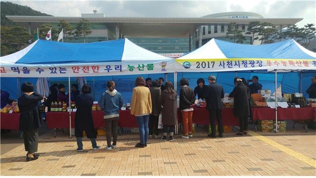사천시는 매월 셋째주 목요일 사천시청 광장 앞에서 사천시정보화농업인연구회를 주축으로 직거래장터를 개최하고 있다.
