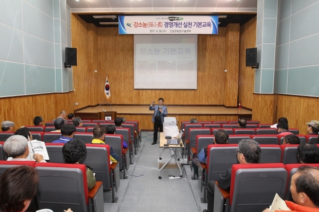 경남 고성군은 전국 최고의 농업강군 육성을 위해 26일 오후 1시, 농업기술센터 생명환경농업연구소 강당에서 강소농(强小農) 농업경영체 50여 명을 대상으로 경영개선 실천 기본교육을 했다.