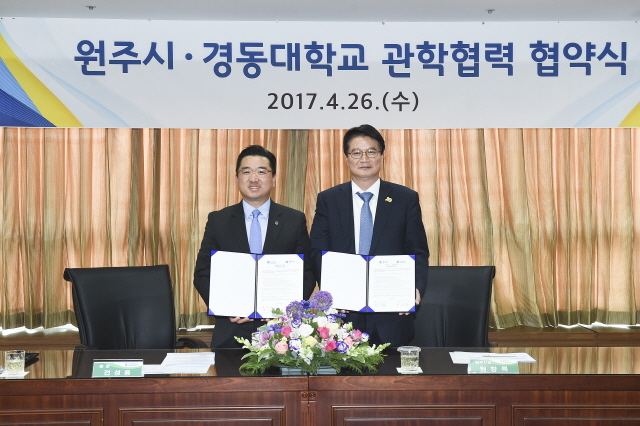 경동대·원주시 관·학협력 협약은 원주시 및 강원도 발전 방안을 마련함에 있어 ▲국가·지자체 등 공공기관의 각종 연구과제와 공모에 공동참여 ▲지역현안에 대한 세미나·심포지엄·공청회의 공동개최와 정보교류 ▲지역사회 발전 연구와 행정 전문성 제고를 위한 인력 양성 및 제공 ▲취업 활성화를 위한 맞춤형 프로그램 개발·운영 협력 등의 약속을 담았다.