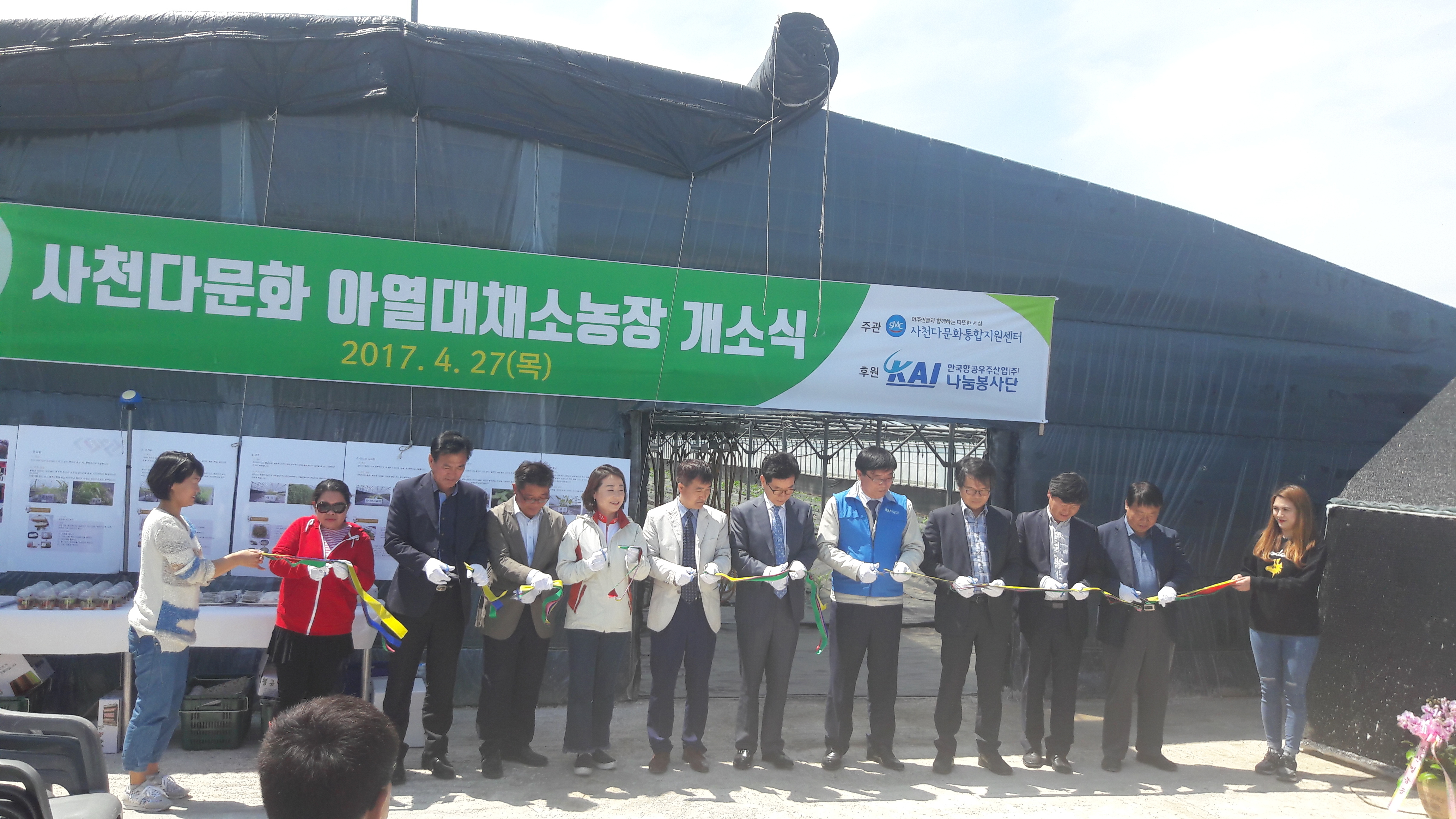 사천다문화 아열대채소 농장은 사천다문화 통합지원센터가 주최하고 ㈜한국우주항공산업 나눔봉사단이 후원하여 사남면 죽천리 261-2번지에 살림을 차렸다.