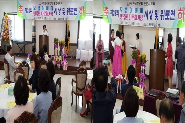 한국부인회 순천시지회(회장 최두례)가 제45회 어버이날을 맞이해 제28회 모범어버이 시상식을 가졌다.