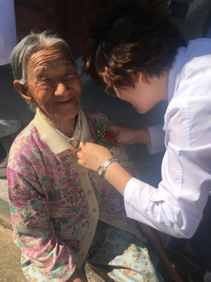 그 외에도 말벗 되어드리기, 혈압 및 혈당 등 건강상태확인, 사진촬영 및 기념 선물을 증정하는 시간을 가졌다.