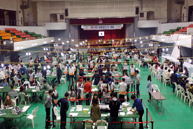 9일 오후 8시 투표종료와 동시 거제시체육관에 마련된 개표소로 62개 투표소에서 이송된 투표함을 개함한 결과 민주당의 문재인 후보가 다른 후보들을 더블스코어 차이로 여유있게 누르고 승리해 고향민심을 확인했다.