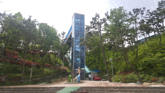 이번 사업을 통해 군은 당항포관광지 내 인기 전시관인 주제관(다이노피아관)과 당항만을 조망할 수 있는 ‘하늘공원’을 통하는 수직 동선구간에 25m 높이의 옥외 엘리베이터를 설치했다.