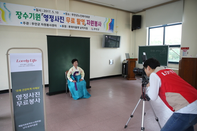 이날 행사는 롯데아울렛 남악점의 지역사회 공헌활동의 일환으로 무안군에 거주하면서 영정사진 촬영을 희망하는 어르신 50여명을 대상으로 사진촬영 전문가의 재능기부와 사진제작 비용 전액을 롯데아울렛 남악점에서 부담해 진행됐으며, 촬영한 영정사진은 제작이 완료 되는대로 어르신들에게 전달될 예정이다.