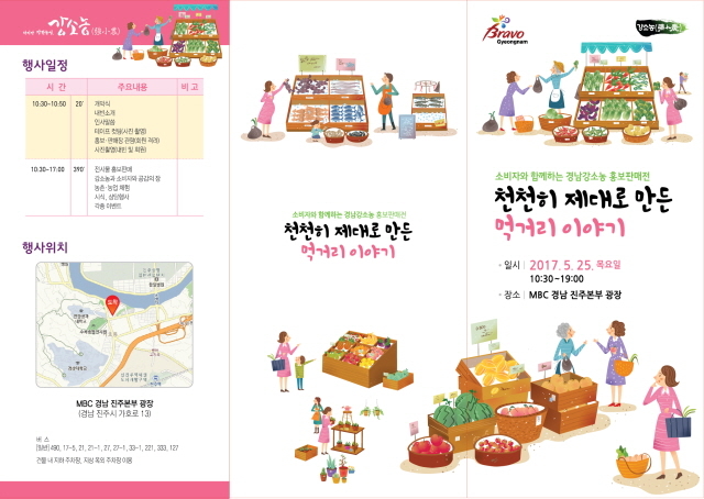 오는 25일 오전 10시 30분부터 하루 동안 MBC 경남 진주본부 광장에서 열리는 이번 행사는 18개 시군 강소농회원 등 150명과 SNS 활동으로 인연을 맺은 소비자와 사회단체 등 1500명을 대상으로 소통의 장을 펼치고, 신선한 우리 농산물을 홍보판매 한다.
