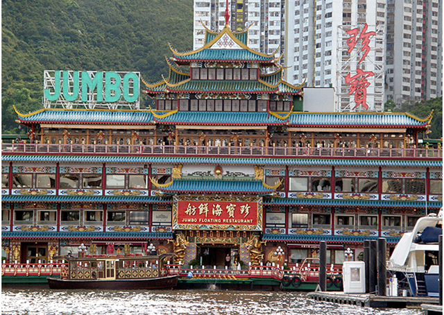 영화 ‘도둑들’ 촬영으로 한국에 더욱 유명해진 홍콩 점보수상식당은 홍콩달러 3200만 달러(24억 원)을 들여 4년간 3척의 대형 어선으로 만들어진 세계 최대의 수상레스토랑이다.