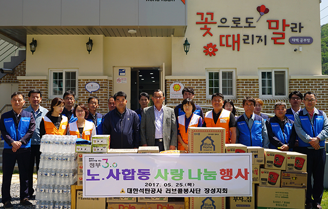 강원 태백시 장성동 대한석탄공사 러브콜 봉사단 장성지회는 25일 태백시 월드비젼 꽃때말 공부방에서 ‘정부 3.0 노사합동 사랑 나눔 행사’를 가졌다