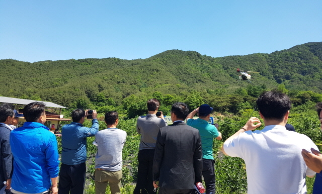 연시내용은 화판전시를 통해 올해 농림지 돌발해충 발생상황과 대책보고를 도 농기원 황갑춘 지도관이 설명하고, 이어서 병해충 방제기를 활용한 돌발해충 방제시연이 진행됐다.