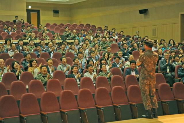 ▲39사단에서 열린 경상남도 읍·면·동장 부대초청행사에서 문병호 사단장이 환영인사를 하자 참석자들이 박수를 치고 있다. ⓒ육군제39사단