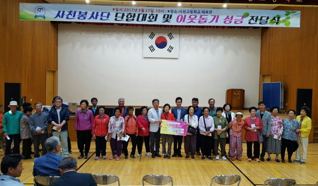 사천봉사단은 지난 27일 사천고등학교 체육관에서 관내 독거노인 30명에게 성금 600만 원을 전달하고, 회원 단합대회 행사를 가졌다.