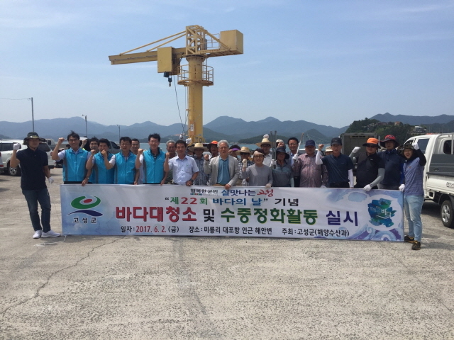 경남 고성군은 지난 2일 오후 2시, 삼산면 미룡리 대포항 내에서 ‘제22회 바다의 날’을 맞아 대대적인 바다정화 활동을 펼쳤다.