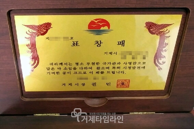 거제시장상을 받으면 포인트가 2만점 주어지게되며 5만점에 달하면 연말에 5만원 상당의 거제사랑상품권이나 교통카드를 면.동을 통해 지급받는다. 단 이 누적 포인트 점수는 3년간 미사용하면 자동 소멸되므로 거제시는 기부행위라고 볼 수 없다는 입장이다.