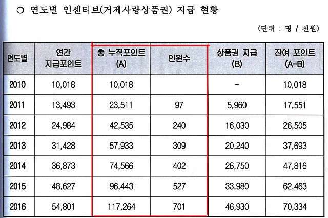 그런데 지난 20016년 5월 1일부터 지난 4월 30일까지 거제시가 집계한 포인트 누적점수는 4711만8000점이며, 2010년 7월 이 시책 시행일부터 매년 지급한 총 누적 포인트는 701명에게 1억1726만4000점이었다.