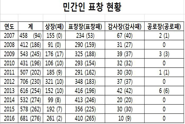 그런데 거제시는 권민호시장 취임 이후인 지난 2010년부터 민간인들에게 시정발전과 시민복리증진에 기여한 공로를 들어 전임 시장 때 보다 수상자 숫자가 비교적 많이 늘어나고 있어 선거를 의식한 선심성 행정이 아니냐는 비판이 제기되고 있는 것이다