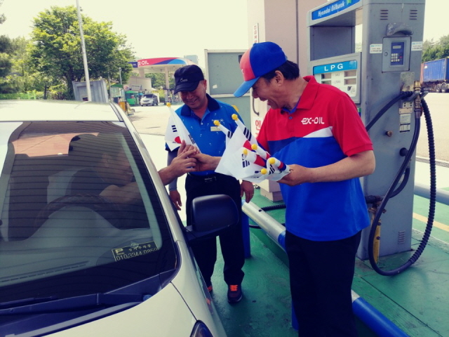 위즈코프(주)주암(천안)주유소는 제62회 현충일을 맞아 주암 휴게소 내 주유소를 이용하는 고객들에게 국가 유공자들의 숭고한 희생정신을 기리고 애국의 소중함을 고취시키기 위해 무료로 태극기를 나누어 주었다.