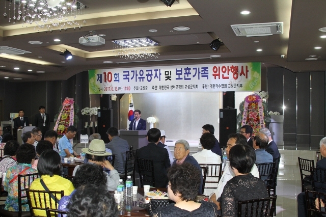 경남 고성군은 13일 오전 11시, 고성 축협 컨벤션홀에서 국가유공자 및 보훈가족 등 200여 명이 참석한 가운데 ‘제10회 국가유공자 및 보훈가족 위안행사’를 개최했다.